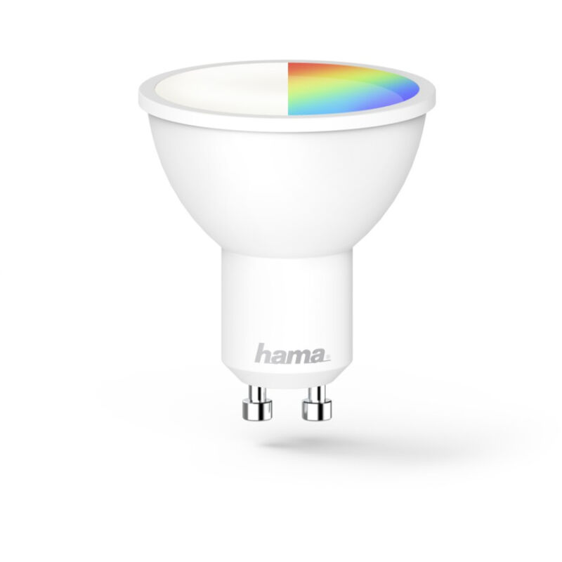 Lampada LED WiFi Hama Controllo intelligente dell'illuminazione con la lampada LED WiFi a forma di riflettore: crea sorgenti luminose, effetti di luce o atmosfere luminose speciali in modo molto semplice tramite app o controllo vocale, ad es. scegliendo tra 16 milioni di colori, attenuando o modificando la temperatura del colore La lampadina WiFi funziona senza gateway (hub): non è necessario un dispositivo aggiuntivo e risparmi costi aggiuntivi perché la presa stabilisce una connessione WiFi diretta con la lampada WiFi Gioco intelligente di colori: scegli tra 16 milioni di colori per abbinare esattamente il tuo umore o l'occasione, come un arancione vibrante per iniziare la giornata o un cambio di colore colorato per una festaPasso dopo passo verso una casa intelligente: con l'app Hama Smart Home puoi espandere e connettere la tua casa intelligente con qualsiasi numero di prodotti Hama Smart HomeSul divano o in treno: con l'app Hama Smart Home puoi controllare la lampada LED WiFi da