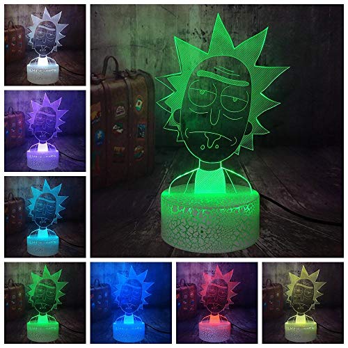 Lampada da illusione 3D Lampada da notte a led Anime Rick e Morty Acrilico Crackle Cartoon Bambini Telecomando Desk Home Decor Regalo di Natale