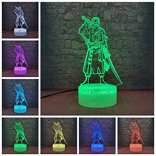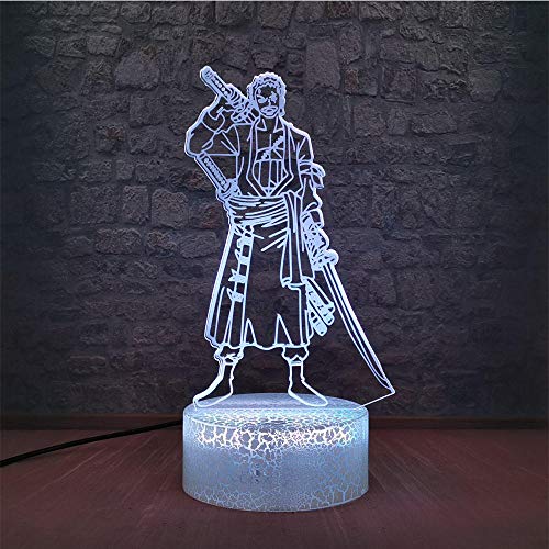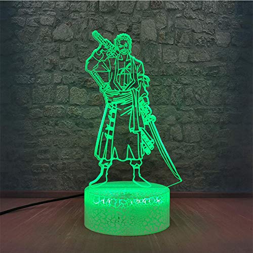 Lampada Da Illusione 3D Lampada Da Tavolo A Led Anime One Piece Zoro Warrior Swordsman Cool Cartoon Ruolo Lampadina Amico Luffy Lava Bambini Amico Regalo