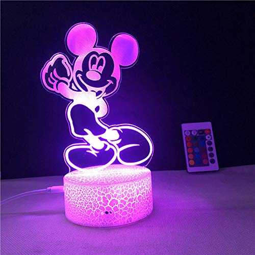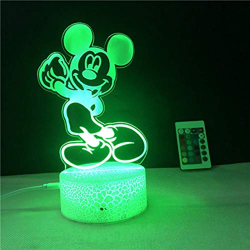 Lampada d'illusione 3D di Topolino, luce notturna a LED, con 7 colori lampeggianti, per decorazione della camera da letto, ideale come regalo, lampada da comodino, creativa