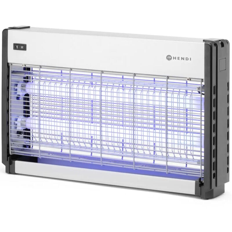 Numero del produttore: 270165 La lampada insetticida per interni Hendi ha un alloggiamento realizzato in una speciale lega di alluminio e materiale ABS ignifugo, che garantisce un utilizzo sicuro. E' dotata di 2 lampade fluorescenti UVA e di una catena grazie alla quale la lampada può essere montata a soffitto o in appoggio. Il vassoio estraibile consente una facile pulizia dagli insetti. Caratteristiche del prodotto: - Alloggiamento in lega di alluminio, - Materiale ABS ignifugo, - Due lampade fluorescenti UVA, - Effetto insetticida della tensione 2000-2500 V, - Vassoio rimovibile, - Catena per il montaggio a soffitto. Parametri: - Numero di catalogo - 270165 - Potenza - 40 W - Voltaggio - 230 V - Dimensioni - 485 x 90 x 310 mm Fornitura: - Lampada anti-insetti per ambienti 40 W - Hendi 270165.