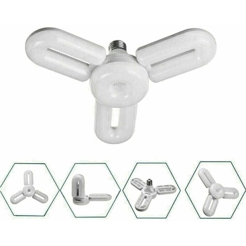 Lampadina LED deformabile. Caratteristiche 3 Luci direzionabili Potenza: 35W Temperatura luce: 6000K, luce fredda Attacco: E27 Dimensioni: 25 x 22 x 7cm circa
