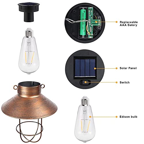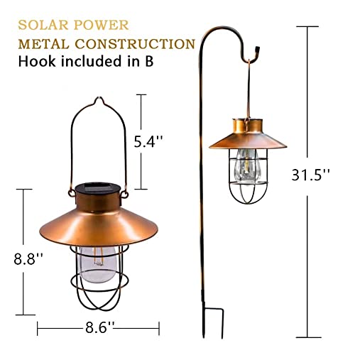 Lampada a Lanterna Solare, Lampada a Sospensione Solare da Esterno a LED in Ottone retrò IP65 Illuminazione paesaggistica Impermeabile Luci da Patio in Metallo Vintage per la Decorazione del