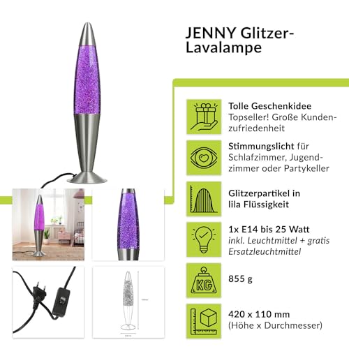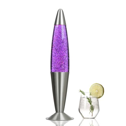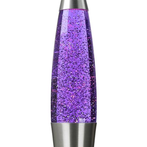 Lampada lava in alluminio e vetro color argento, viola e glitter per soggiorno, 42 cm di altezza, E14, inclusa lampadina, lampada da tavolo retro con glitter JENNY