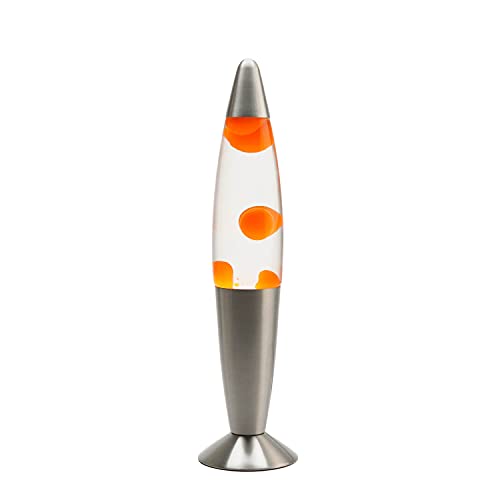 Lampada lava in alluminio e vetro color argento, trasparente e arancione per camera dei ragazzi, 36 cm, G9, inclusa lampadina, lampada da tavolo retro decorativa TIMMY