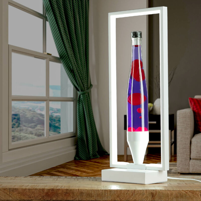 Dettagli del prodotto Materiale: Metallo, vetro Dimensioni: larghezza: 100 mm, altezza: 485 mm, lunghezza: 200 mm Attacco: 1x G9 mit 50 Watt inklusive + LED Classe di protezione dagli spruzzi: IP20 Colore: Bianco opaco, viola, rosso Peso: 1050 grammo Descrizione del prodotto La reinterpretazione decorativa di una lampada a lava è uno straordinario richiamo visivo su qualsiasi tavolo grazie alla cornice a LED illuminata. il saliscendi delle bollicine crea un'atmosfera rilassata e crea un accento decorativo in ogni salotto, sala giovani e cantina delle feste la lampada genera calore che avvia il processo di lava: questo può richiedere un certo tempo (>2 ore) Attenzione: non scuotere o ruotare mai (!) la lampada lavica calda durante il funzionamento, in quanto ciò disturba gravemente il processo e può causare lo scolorimento del liquido.