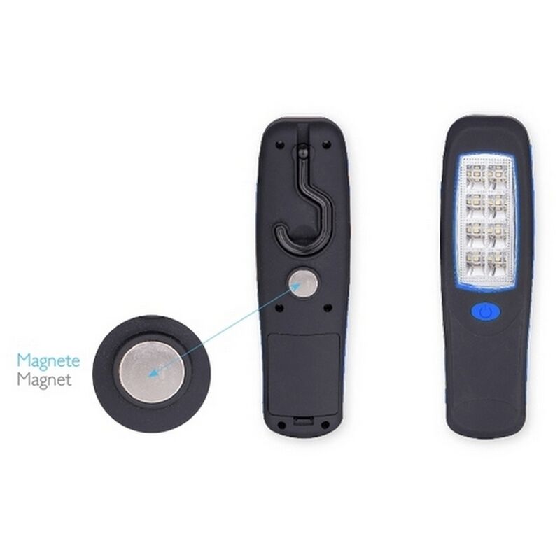 La lampada da lavoro è un tipo di lampada progettata per essere utilizzata in situazioni in cui è necessario illuminare una zona specifica, come ad esempio un banco di lavoro, una scrivania o un'area di riparazione di veicoli.Questo modello, costruito in plastica e di colore nero e blu, è dotato di 24 Led COB che emettono una luce fredda (tendente al blu). Inoltre, la lampada è munita di calamita e gancio estraibile che permettono di posizionarla ovunque. È alimentata da 3 batterie AA (non incluse).