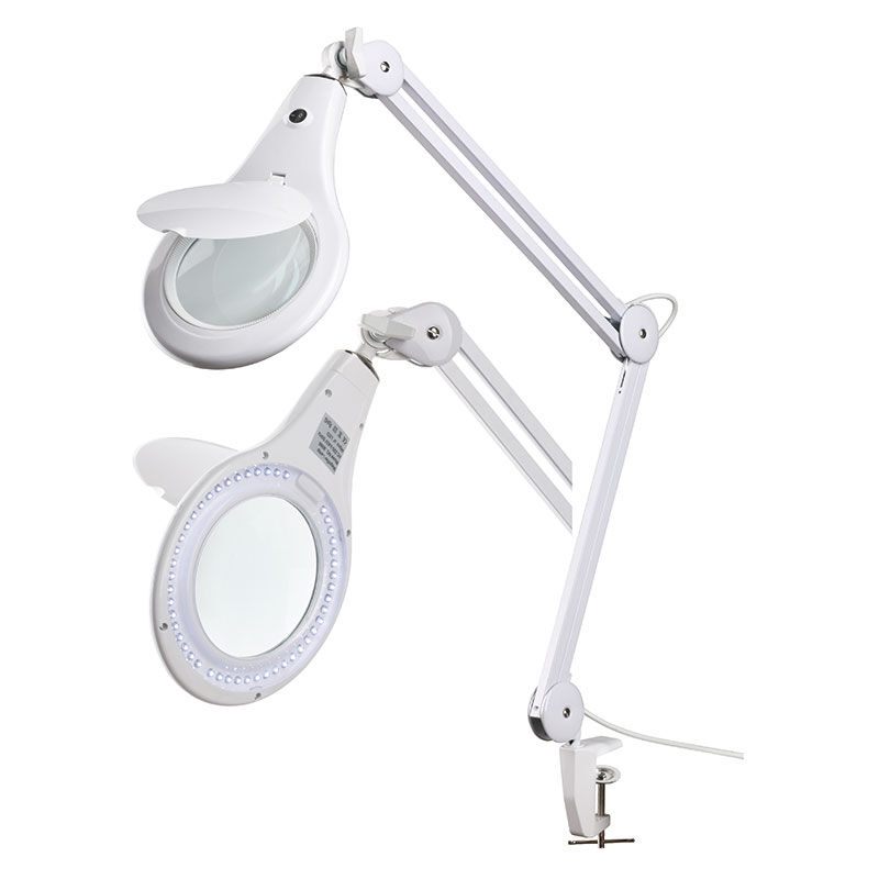 LAMPADA A 48 LED CON LENTE FERVI 0366 Con lente rimovibile Completa di scatola Caratteristiche tecniche: Alimentazione: 230 V 50 Hz 4,8 W Ingrandimenti: 2x Lente: Ø 127 mm Raggio d'azione: 810 mm Capacità morsetto: 70 mm