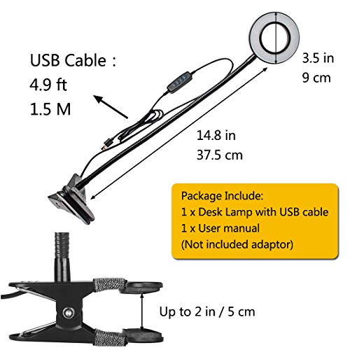 Lampada Lettura Con Clip Luce Da Scrivania Led Con Pinza, 3 Modalità & 10 Livelli Di Luminosità Con Caricatore Usb Flessibile Lampada Portatile Occhi Cura Per Lettura Di Notte Lavoro, 7 W (Nero)