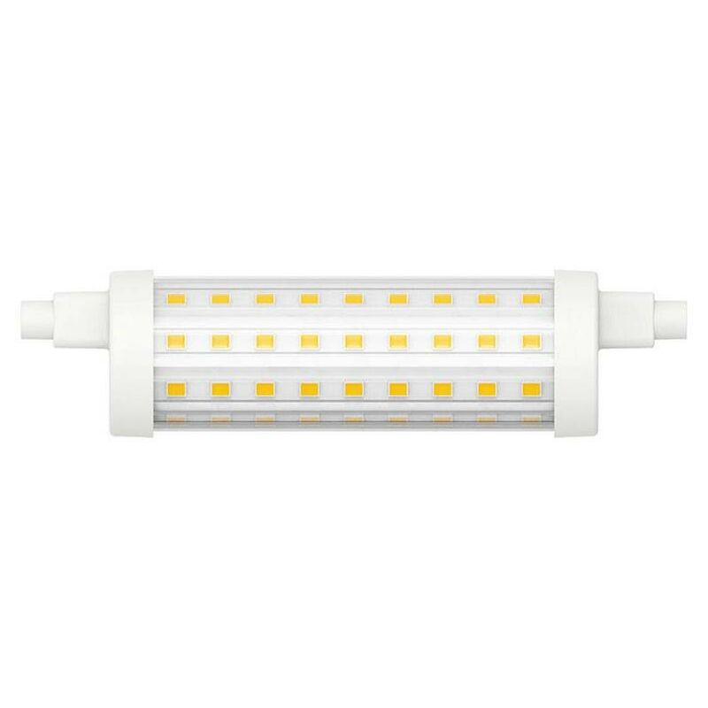 Lampada Lineare Led Duralamp con le seguenti caratteristiche: Potenza 15 Watt Tensione 220-240 Vac Attacco: R7s Apertura fascio: 330 gradi Flusso 2000 lumen Temperatura di colore: 2700 K (luce calda) Dimmerabile Classe di efficienza energetica E Grado di protezione: IP20 Diametro: 29 mm - Lunghezza: 118 mm Il particolare posizionamento degli attacchi permette l'inserimento di queste lampade in tutti gli apparecchi con attacco R7s. L'assenza di emissione di raggi UV ed infrarossi, che causano lo scolorimento delle merci, rendono l'impiego di questa lampada preferibile a quello di un'alogena, soprattutto nelle applicazioni commerciali. Non necessita di vetro anti-scoppio. Non impiegare con variatore di luce eccetto ove indicato. Caratteristiche: Materiale: Polimeri termoconduttori Indice resa cromatica 80 Durata di vita 15000 h Vita dei LED L70B50 Tempo di innesco