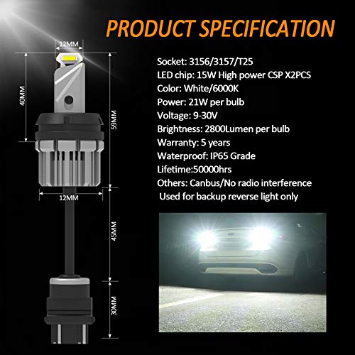 Confezione Da 2 Lampadine A Led Per Retromarcia Canbus Senza Errore Nel Computer Di Bordo.Ideale Per Auto Camion Rimorchi Camper Sia 12V che 24V, Senza Polarità e Funziona Con Corrente Costante.