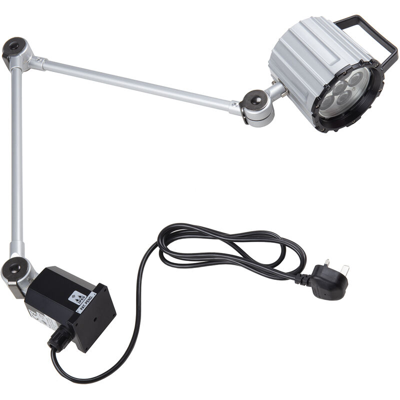 Tipo lampada = LED Tipo di luce = Braccio articolato Wattaggio = 12 W Lunghezza braccio = 800mm Tipo braccio = Regolabile Grado IP = IP65 Spina tipo = Type G - British BS1363 Trasformatore integrale = No Lunghezza cavo = 1.8m Valore di efficienza energetica UE = A+ Lampada da lavoro a LED da 12 W con connettore maschio UK