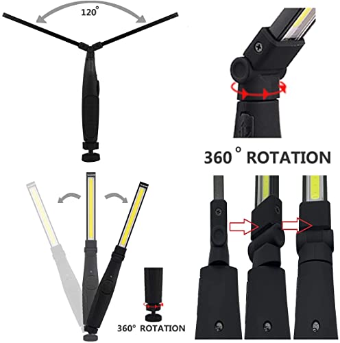 2X Lampada Magnetica Portatile Professionale per Officina Pieghevole, Luce di Lavoro LED Ricaricabile con Base, Lampade Ispezione per l'escursione (nero)