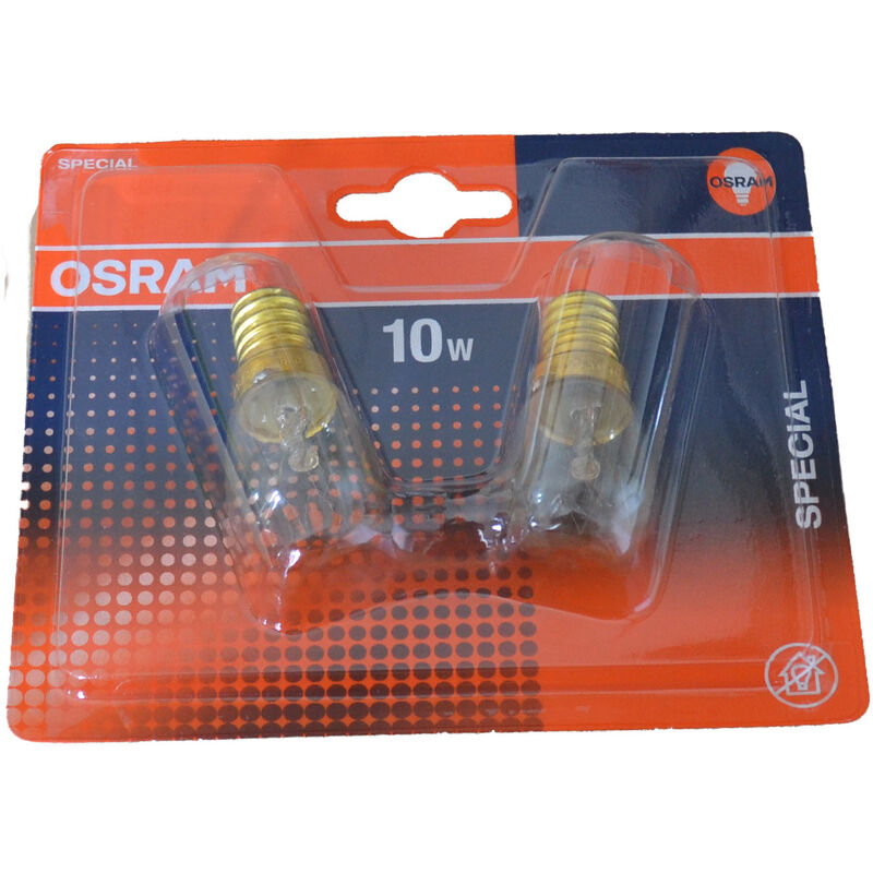 Lampadina per frigorigero - Marca Osram - 10W - Attacco E 14 - Confezione da 2 pezzi - 10 confezioni 10 x Lampadina Osram per frigoriferi 10W attacco E14 luce bianca calda, confezione da due lampadine. Grazie alle piccole dimensioni si adatta a tutti i tipi di frigorifero. 10 confezioni