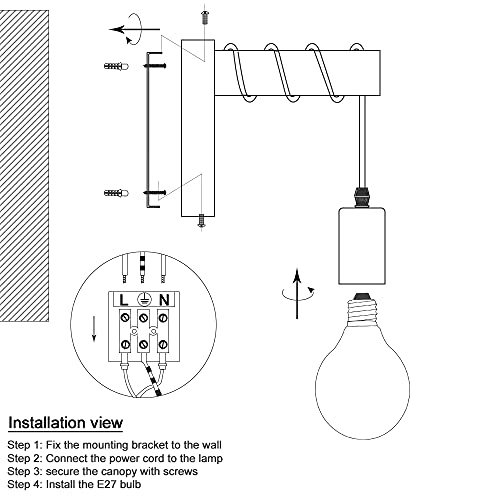 Tipo di lampadina: si adatta a tutte le lampadine E26 / E27 come lampadine Edison, lampadine a LED, lampadine a risparmio energetico, lampadine a incandescenza.Max 40 W per lampadina. (Lampadina NON inclusa).