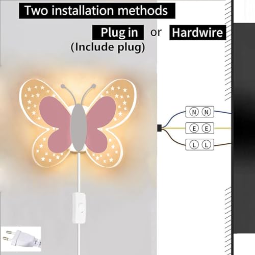 Lampada a Muro LED 10W con Interruttore, Applique da Parete Butterfly con Spina Luce per Camerette Ragazzo Bambina Luce notturna a Farfalla Lampada da Comodino Lampada da Parete Bambini Dimmerabile
