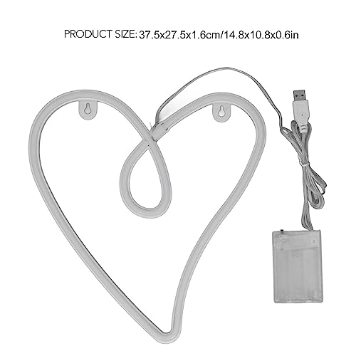 Lampada Al Neon a LED, Retro Doppio Alimentatore Luce Al Neon a Cuore in PVC 50000H per (Luce Rosa)