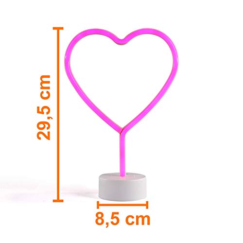 Luce al neon a forma di cuore, colore: rosa fluo, materiale: plastica, LED, infrangibile, rimane freddo durante l'uso. Dimensioni: circa 29,5 x 8,5 cm.