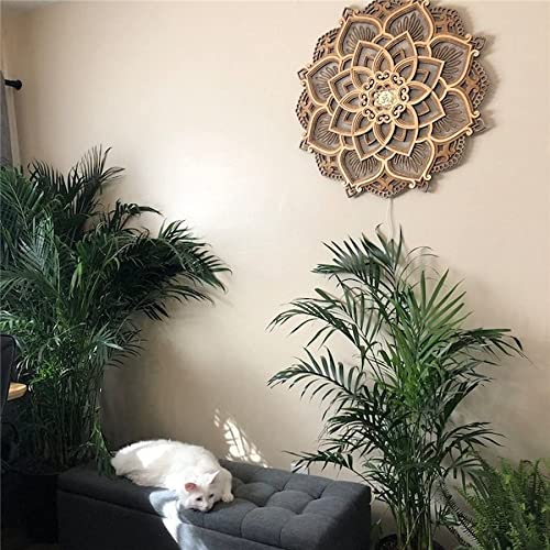 Lampada da notte a led per camera yoga Mandala, luce d'atmosfera creativa per camera yoga Mandala, elegante lampada a sospensione in legno mandala, led curvo tagliato a laser multistrato (A)