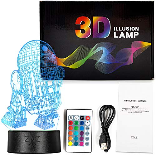ZNZ Lampada da notte a LED 3D 16 colori Lampada da tavolo a LED dimmerabile con telecomando per bambini, luci 3D Illusioni ottiche Lampada da tavolo per arredamento (5-R2D2)