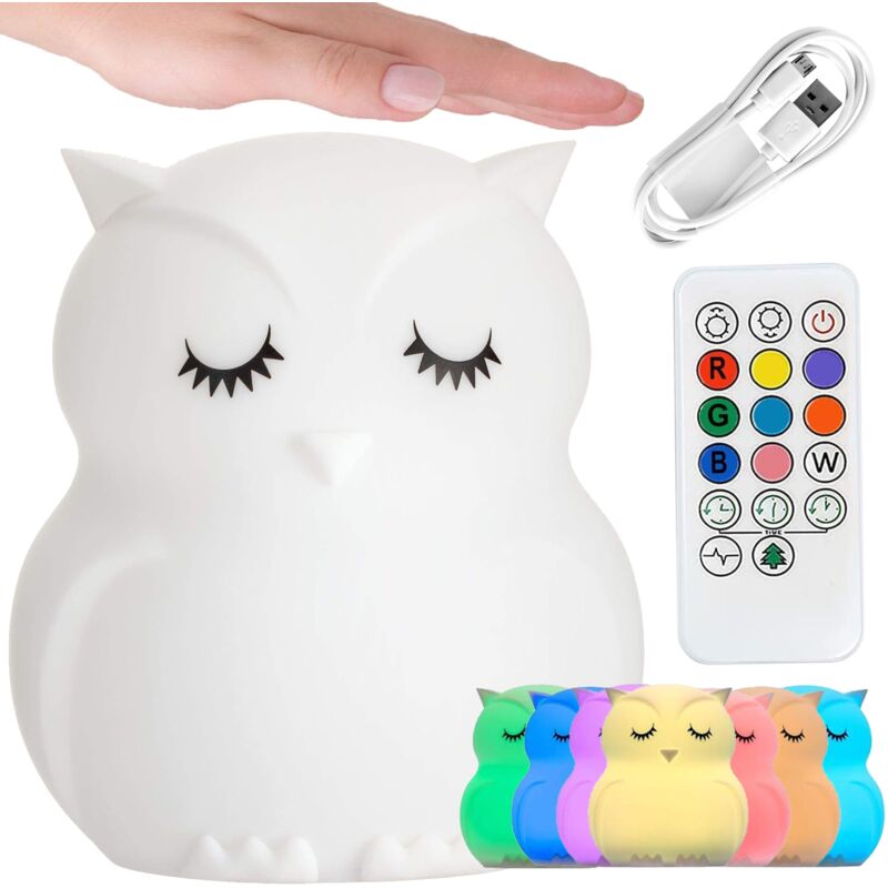 Lampada notturna a LED OWL Colore gufo: bianco 9 colori di illuminazione Un regalo perfetto per bambini di tutte le età! Una simpatica lampada notturna a LED a forma di gufo è un regalo perfetto per il tuo bambino. La lampada è realizzata in silicone morbido e sicuro e non contiene sostanze tossiche. Questo rende il prodotto adatto anche ai bambini. Questo adorabile gufo ha 3 modalità operative, 9 colori e 3 timer. Grazie alla luce calda e rilassante potrete addormentarvi molto facilmente. La lampada notturna a LED è alimentata da 3 batterie AAA o dal cavo USB incluso nel set. Il controllo avviene tramite telecomando o toccando la lampada. Di notte funge da lampada da comodino accanto al letto. Durante il giorno si trasforma in una decorazione mozzafiato. "Adotta" il tuo gufo per goderti la sua multifunzionalità. ✅Specifiche: LED RGB 3 modalità operative 9 colori 3 timer Cambiamento di luminosità Modalità lampeggiante Modalità fluida Modalità continua Ecologico Silicone non tossico