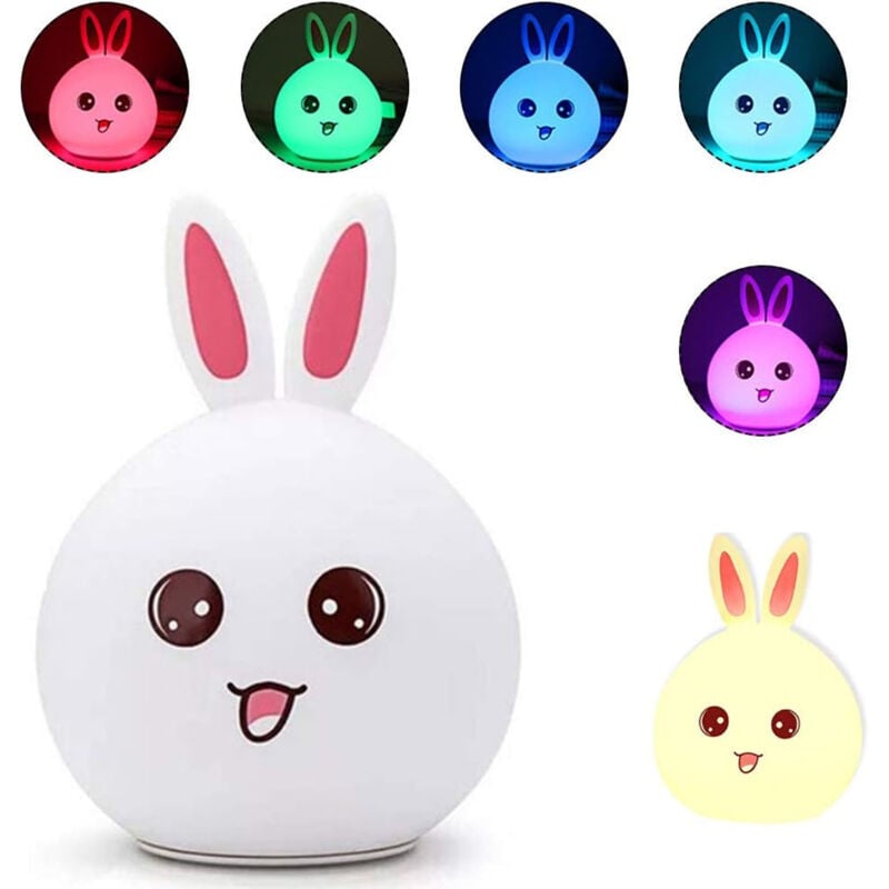 Questa luce notturna per bambini è abbastanza morbida da accendere la luce nel cuore della notte senza disturbare il sonno del bambino, facendo sentire il tuo piccolo a suo agio e non ha paura del buio. MAGGIORI INFORMAZIONI Caratteristiche principali: Materiale: silicone + ABS Porta di ricarica: USB Tema: Coniglio Colore Led: RGB Dimensioni: 18x11cm circa La confezione contiene: Nr.1 Lampada notturna RGB