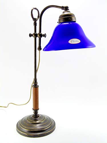 Lampada ottone brunito da tavolo,scrivania,stile ministeriale con vetro slp1 Misure:H da 49cm a 56cm,Ø vetro 19cm,profondità 33cm,Ø base 17cm,Le misure sono con vetro.Portalampade attacco Edison E14