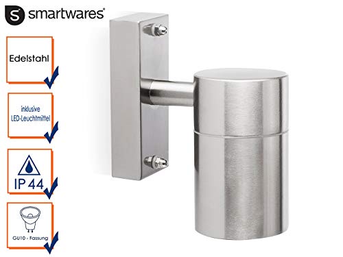 Lampada da parete, in acciaio inox, per esterni, con lampadina a LED Downlight, attacco GU10, IP44, illuminazione per facciate.