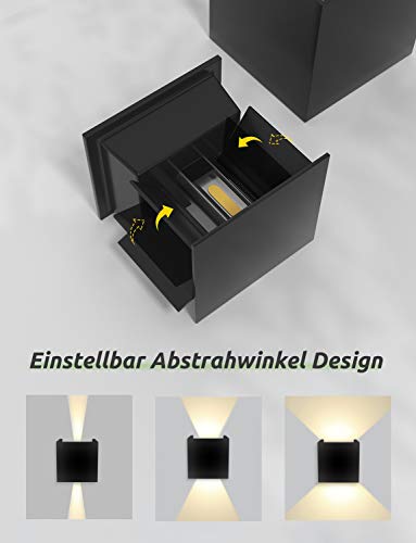 GHB, lampada a LED da parete da 12 W, con angolazione regolabile e design impermeabile IP 65, LED da parete con illuminazione di 2700 K in bianco caldo, Nero, E27 12.0W