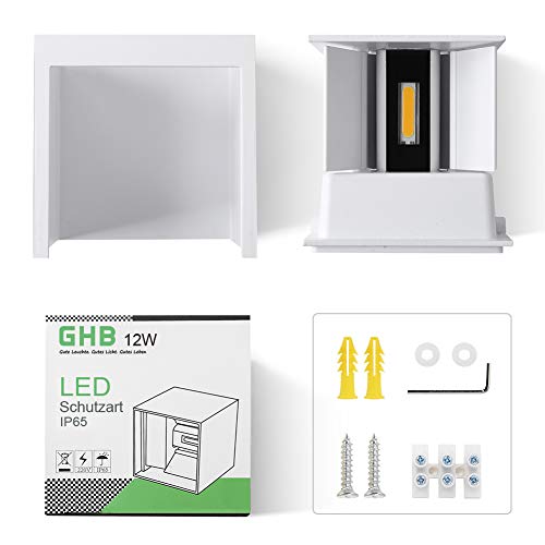 GHB, lampada a LED da parete da 12 W, con angolazione regolabile e design impermeabile IP 65, LED da parete con illuminazione di 2700 K in bianco caldo, bianco, E27 12.0W