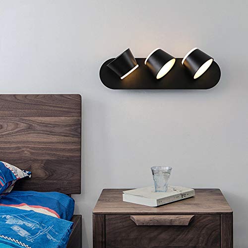 24W Lampada da Parete a LED, Applique Rotante a 350 ° Applique da Parete Interni Nordica Moderna Ac220-240V Luce Bianca Calda con 3 Rotanti Illuminazione per Camera da Letto e Lettura Testiera,Nero