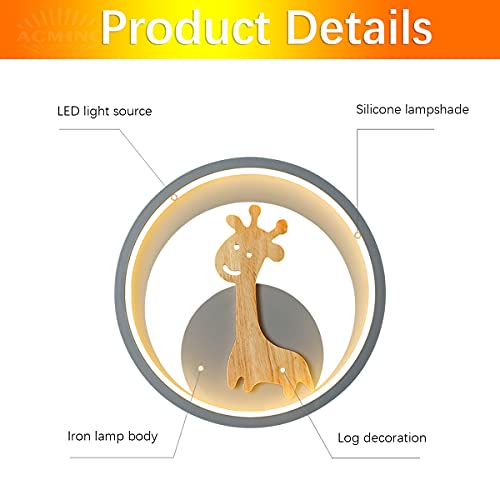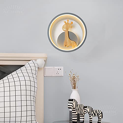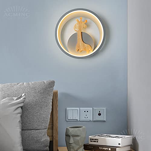 Lampada Da Parete Bambini Legno, Cartone Animato Cervo Applique Da Parete Interno Decorazione Per Camerette 3000K Bianco Caldo Illuminazione Da Parete LED Per Soggiorno Ragazzi Ragazze Camera,Grigio