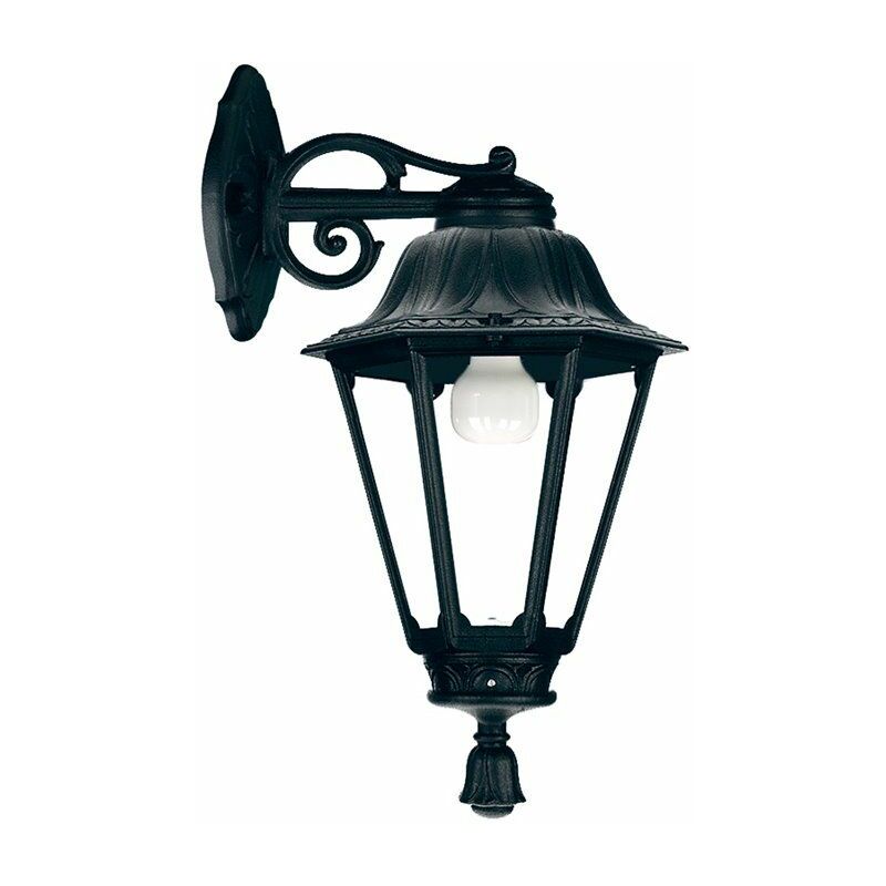 Lanterna INDURA MEDIUM 6 E27 braccio nero. Lampada ad incandescenza in resina, diffusore in policarbonato trasparente, finitura nera e portalampada E27, per uso esterno. Applicazione: residenziale classico. 110 V-240 V CA. Nessuna attrezzatura richiesta. Classe elettrica II. Potenza (W) 75.