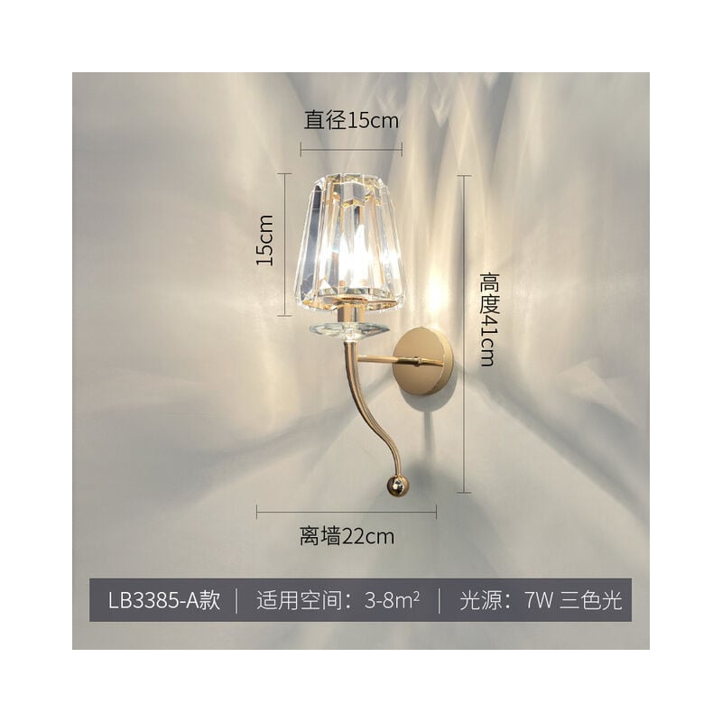 Lampada da parete in cristallo di lusso a luce moderna lampada da comodino per camera da letto nordica sfondo lampada da parete per hotel scala corridoio,Trichromatic Light