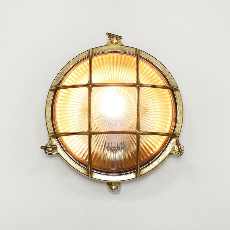 Dettagli del prodotto Materiale: Ottone, vetro Dimensioni: larghezza: 210 mm, altezza: 210 mm, profondità: 90 mm, diametro: 210 mm Attacco: 1x E27 fino a. 18W Classe di protezione dagli spruzzi: IP64 Colore: Ottone, trasparente Peso: 1500 grammo Descrizione del prodotto La lampada è realizzata in ottone massiccio e vetro. La manifattura greca fa sì che tutti i prodotti Lido siano antiruggine ed protetti perfino dalla più temibile minaccia d'umidità: Lido infatti resiste all'aria salmastra di mare, rendendola perfetta anche per terrazze, cortili e giardini in prossimità di spiagge e coste. Attacco: 1 x E27 con una potenza max. di 18 W. Larghezza: 210 mm, altezza: 210 mm, profondità: 90 mm. La tonalità del colore è lavorata a mano, pertanto sono possibili lieve variazioni del colore, più chiare o più scure. Ogni prodotto Lido è un pezzo unico nel suo genere! Le applique Lido per esterni in ottone massiccio in stile antico a forma di oblò conferiscono all'atmosfera non solo un tocco
