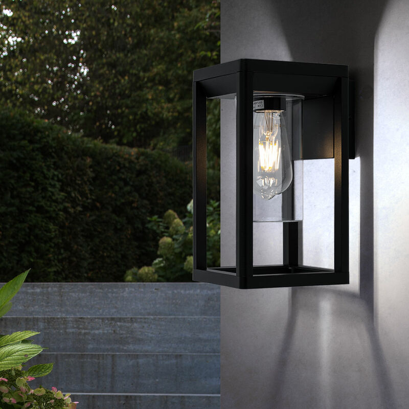 Descrizione La lampada da parete cuboide Candela combina ottimi materiali con un design moderno. Questa lampada da esterno in alluminio nero opaco può essere equipaggiata con una lampada a LED a tua scelta, in modo da poter determinare il colore e la temperatura della luce a seconda della posizione e dello scopo. Rispetto alle luci normali, i faretti a LED consumano una quantità minima di elettricità e sono anche meno delle luci a risparmio energetico. Questo protegge l'ambiente e il tuo portafoglio. È inclusa una sorgente luminosa a LED di alta qualità a risparmio energetico. Dettagli lampada • tipo di lampada: lampada da parete• Materiale: alluminio pressofuso, nero opaco• Paralume: plastica, trasparente• Grado di protezione: IP44• Altezza x larghezza x profondità in cm: 27x15x16,5 • presa: 1x E27• Lampadine incluse: si• lampadine: 1x 8 Watt• flusso luminoso: 1x 1055 lumen• Colore luce: bianco caldo• alimentazione: 230V, 50Hz dettagli sorgente luminosa • Tipo di sorgente luminosa