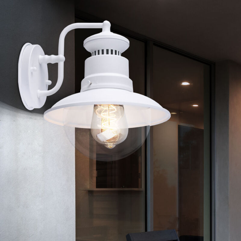 Descrizione Questa bellissima lampada da esterno in stile tradizionale è realizzata in acciaio e vetro trasparente. Il design classico di questa lampada da parete larga quasi 30 cm la rende versatile. Il braccio splendidamente curvo porta una sfera di vetro trasparente contenente un attacco E27, che consente di scegliere l'illuminante (max. 60W) e quindi l'intensità e il colore della luce. Dettagli luce • Tipo di luce: applique • Materiale: acciaio, vetro • Colore: trasparente, bianco • Classe di protezione: IP44 • Larghezza x altezza x profondità in cm: 21,5 x 27 x 24,7 • Presa: 1x E27 • Lampade incluse: Sì • Potenza lampada: 1x 11 watt• Flusso luminoso: 1x 950 lumen• Colore luce: bianco caldo • Alimentazione: 220-240V, 50-60Hz Dettagli sorgente luminosa • Tipo di sorgente luminosa: Samsung SMD LED • Attacco: E27 • Design: Sfera (bianco-opale) • Materiale: Plastica • leggera Corrente: 950 lm (lumen) • Consumo energetico: 11 kWh/1000h • Temperatura colore: 3000 K (Kelvin) • Colore