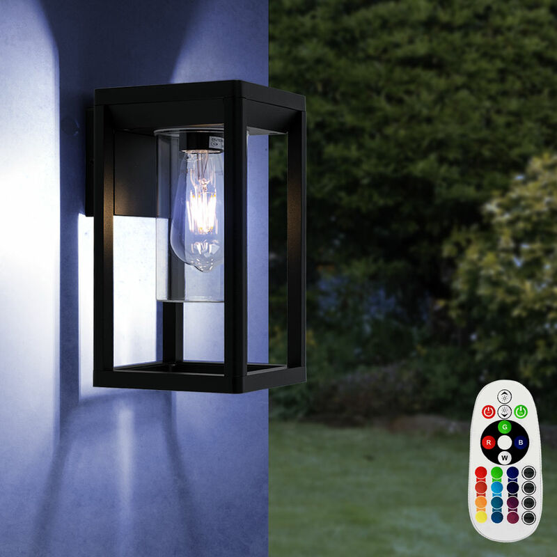 Descrizione L'applique Candela parallelepipedo combina ottimi materiali con un design moderno. Questa lampada da esterno in alluminio nero opaco può essere dotata di una sorgente luminosa a LED a tua scelta, in modo da determinare il colore della luce e la temperatura della luce in base al luogo di utilizzo e allo scopo. Utilizzando il telecomando in dotazione, la lampadina LED RGB può essere impostata su diversi colori e garantisce così un'illuminazione d'atmosfera. Una lampadina LED RGB con telecomando per luce bianca e controllo RGB è incluso nella fornitura. Dettagli luminosi • Tipo di lampada: Lampada da parete• Materiale: alluminio pressofuso, nero opaco• Paralume: plastica, chiaro• classe di protezione: IP44• altezza x larghezza x profondità in cm: 27x15x16,5 • attacco: 1xE27 • lampadina inclusa: si• potenza illuminante: 1x 9 watt• Flusso luminoso: 1x 806 lumen• Colore della luce: bianco caldo• Telecomando: solo per l'illuminante LED RGBdiv>• Alimentazione: 230V, 50Hz Dettagli