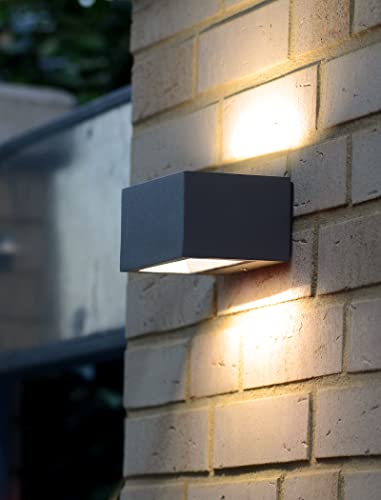 Lampada da parete per esterni Gemini, moderna lampada da parete in antracite, 10,5 Watt, 700 lumen, luce 3000 Kelvin, lampada da parete quadrata con effetto up&down