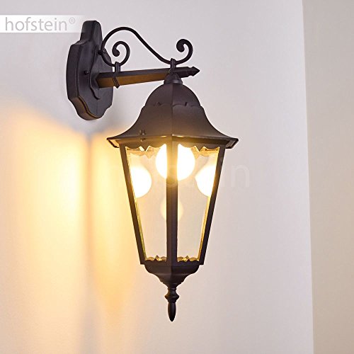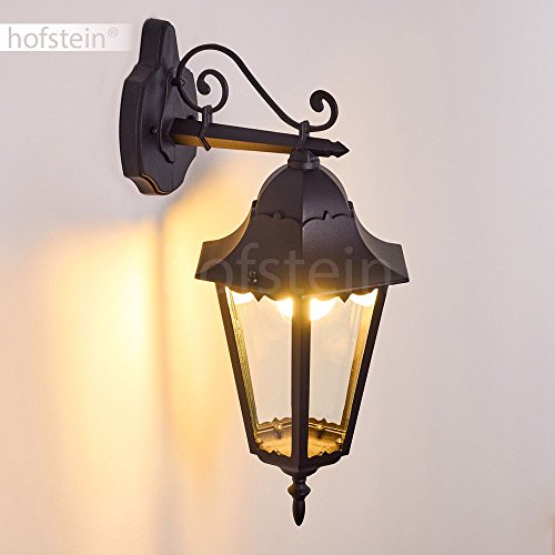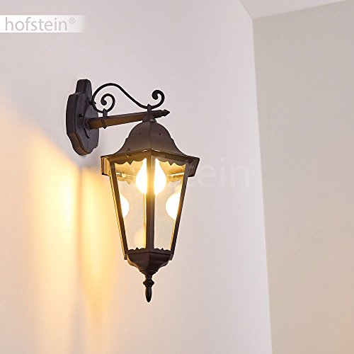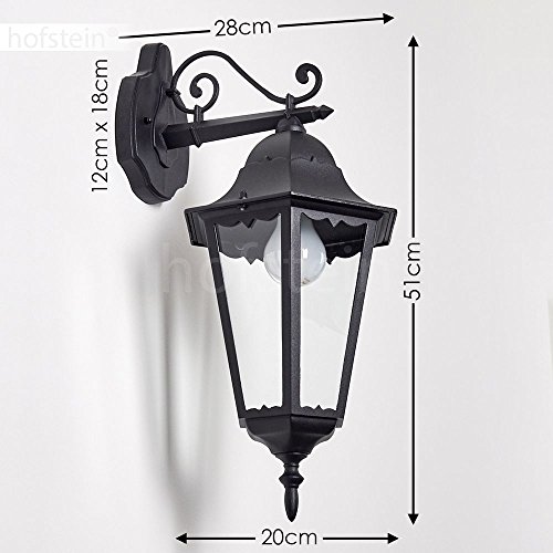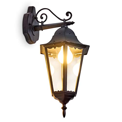 Lampada da parete per esterni Hongkong, lampada da esterno verso il basso in stile antico, in fusione di alluminio in nero opaco con vetri, E27, retro/vintage per terrazza e cortile, senza lampadina/e
