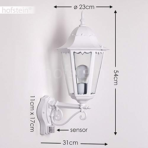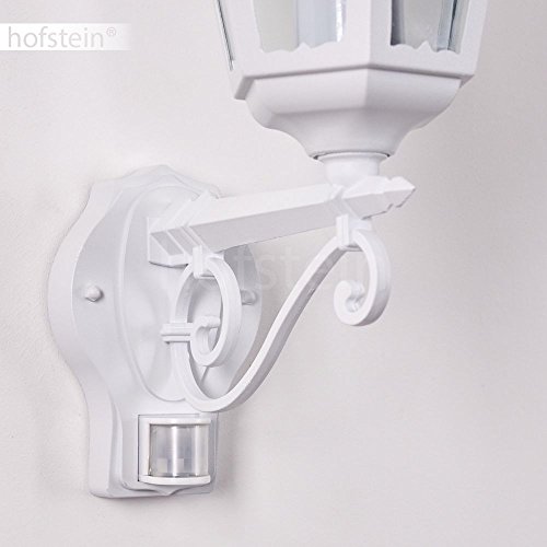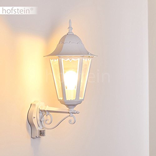 Lampada da parete per esterni Hongkong, rilevatore di movimento, lampada rivolta verso l'alto, stile antico, in fusione di alluminio in bianco, vetri, terrazza/giardino, E27, retro, senza lampadina/e