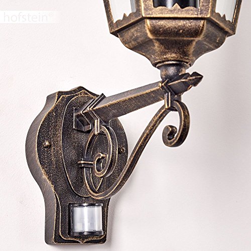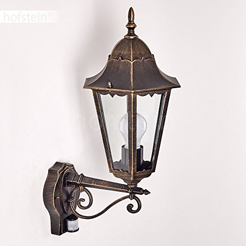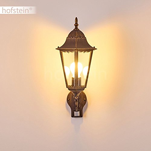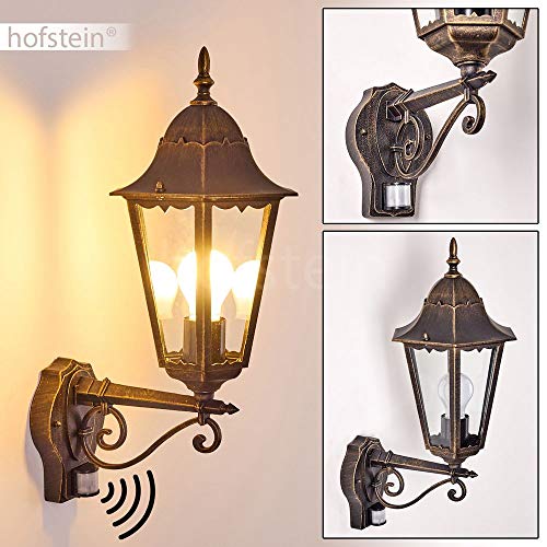 Lampada da Parete per Esterno - Applique Hong Kong Metallo con Paralume in Vetro - Alluminio Marrone Oro con Sensore di Movimento E27