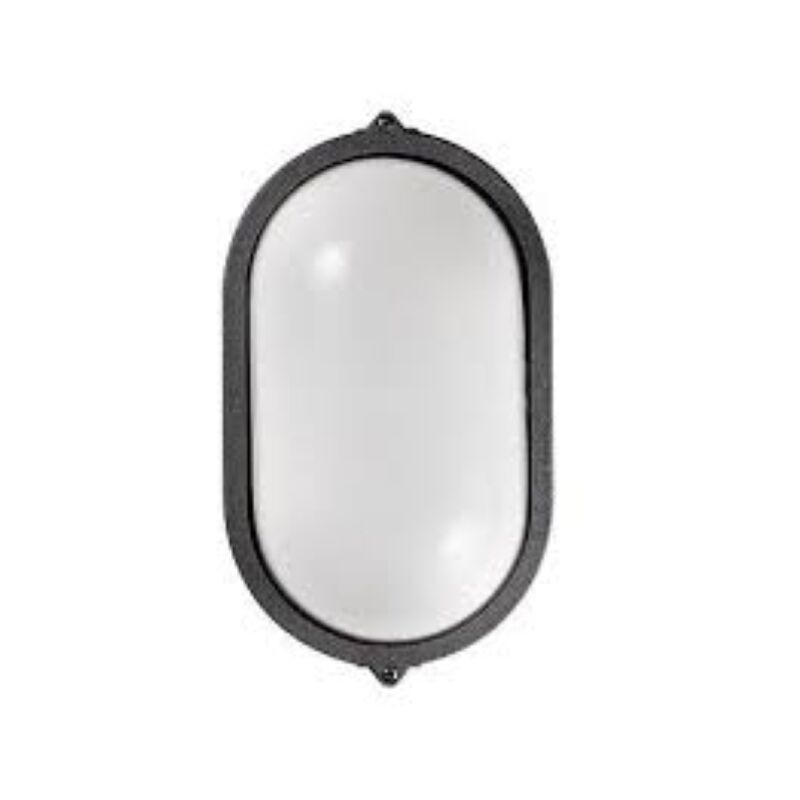 Applique da parete per esterno ovale, con base in alluminio estruso e cornice in alluminio pressofuso color grafite - diffusore opalino;