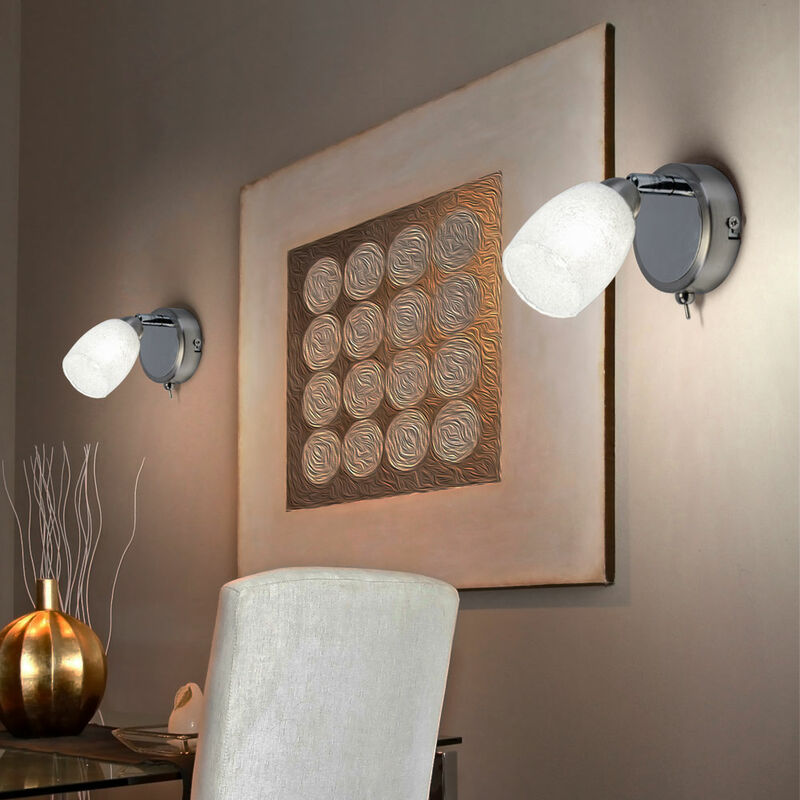 Descrizione La lampada da parete sorprendentemente moderna, offre design e funzionalità. La base cromata in nichel opaco e il faretto in vetro trasparente possono essere integrati in qualsiasi stanza. La lampada può anche essere controllata tramite un interruttore on-off. Il portalampada G9 standard è dotato di una lampadina LED da 3W sostituibile. Altri modelli della stessa serie di prodotti possono completare il quadro nella tua zona giorno. La fornitura comprende due luci! Dettagli luce • Tipo di lampada: parete lampada• Materiale: cromo, vetro• Colore: nichel opaco • Paralume: vetro trasparente, effetto craquelé• Spot più flessibile • Interruttore On/Off • Larghezza x altezza x profondità in cm: 8,5 x 14,5 x 14,5 • Portalampade: 1x LED • Lampada inclusa: Si • Potenza lampada: 1x 3 Watt• Flusso luminoso: 1x 280 Lumen• Colore luce: bianco neutro • S Alimentazione: 230V, 50Hz Dettagli lampade • Attacco: 1x LED • Sorgente luminosa inclusa: Sì• Potenza sorgente luminosa