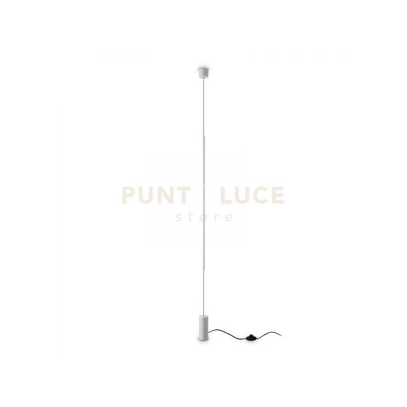 Lampada da parete con rosone, corpoluce e base a terra in metallo. Diffusore in PVC opale satinato. Cavo sostegno in PVC nero. Alimentato dalla base a terra con cavo in PVC nero con spina