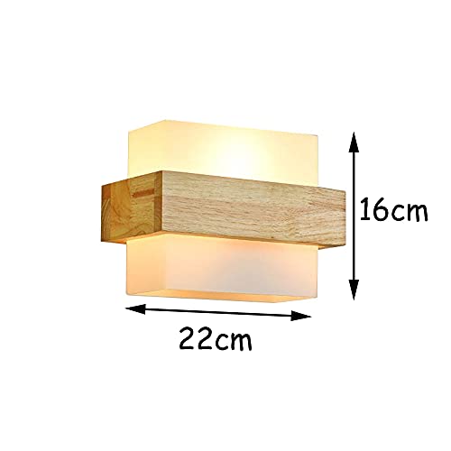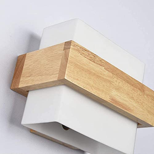 Lampada da Parete Interno in Legno, Lampada da Comodino Semplice Moderna Applique da Parete in Stile Rustico con Paralume in Vetro E27 Base per Bar Camera da Letto Soggiorno Cucina Caffè Corridoio