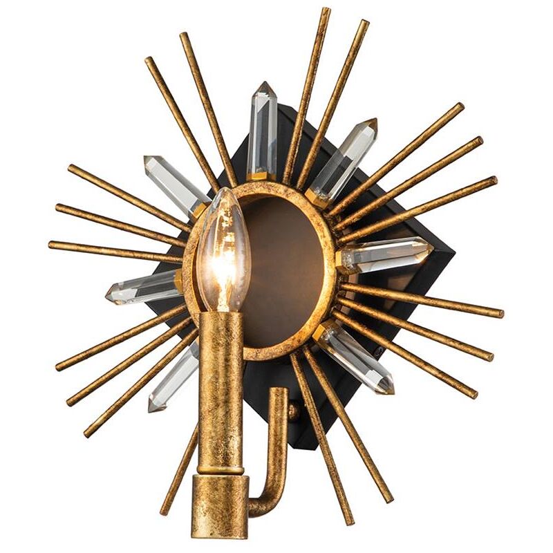 Applique SUN KING E14 1x40W acciaio foglia oro, cristallo H:30,5cm L:31,8cm dimmerabile Dimensioni in mm: Profondità: 127, larghezza: 318, altezza: 305, Peso in kg: 1,04 Tipo di lampadina/ attacco: E14 Lampadine incluse: NO Potenza massima in watt: 1x40W Grado di protezione: IP20 Dimmerabile: SI Materiale corpo: Acciaio Colore corpo: Foglia oro Vetro / materiale paralume: cristallo Garanzia del produttore: 2 anni - Clicca qui per andare direttamente alla Condizioni di garanzia