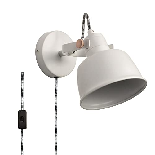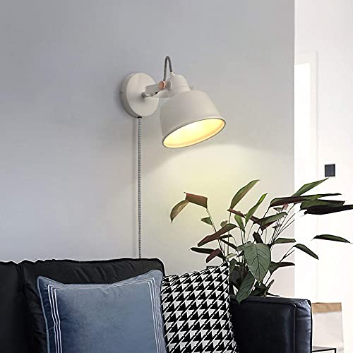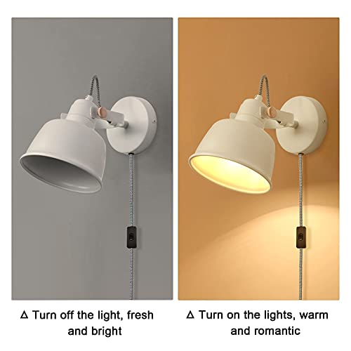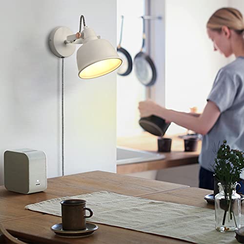 Lampada da Parete Legno Moderna con Interruttoredi, Sollevamento Industriale Rustico Aplique a Sospensione Retrò, E12 Set Applique Lettura a Parete Design per Interni Soggiorno Camera da Letto(Bianco)