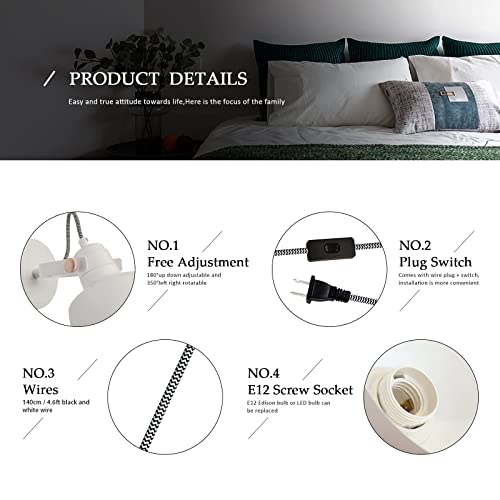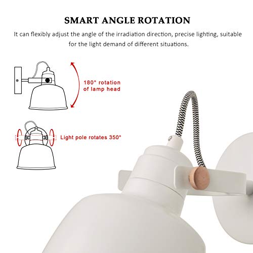 Luce da Parete Girevole e Regolabile - Il paralume può essere ruotato di 350 °, inclinato di 90 °, la direzione di rotazione della luce può essere regolata. Accessori aplique led da parete interni robusti che ti offrono un'esperienza di lettura comoda e conveniente vicino al letto.