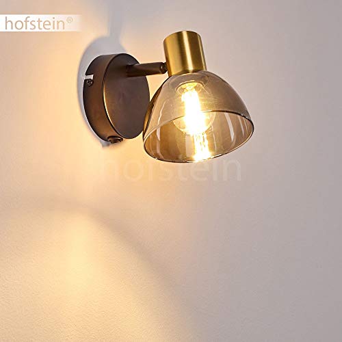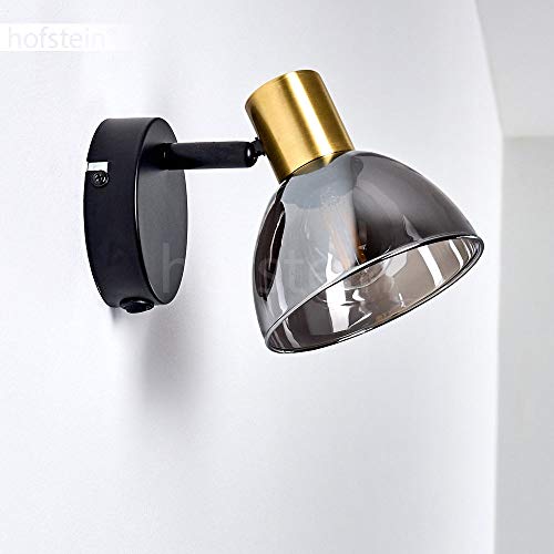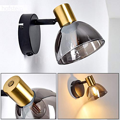 Lampada da parete Mariefred, lampada da parete regolabile in metallo/vetro in nero/bronzo/vetro fumé, 1 luce, E14, spot da parete con interruttore on/off sull'alloggiamento, senza lampadina/e